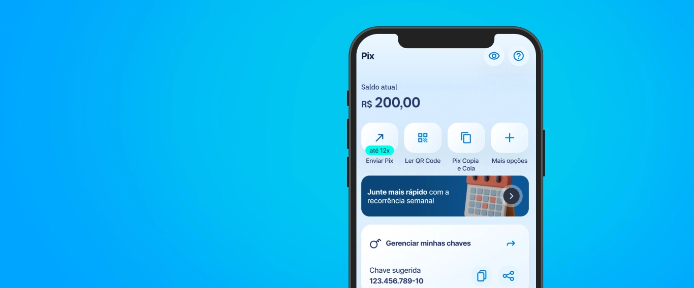 - Na tela inicial do aplicativo, entre em “Pix” e depois em “Enviar Pix”;